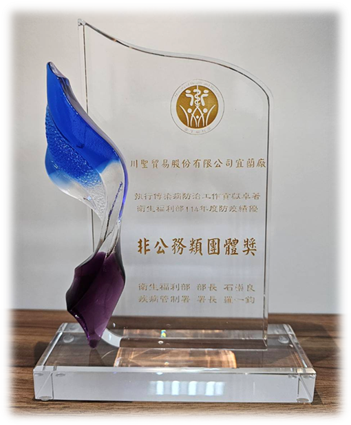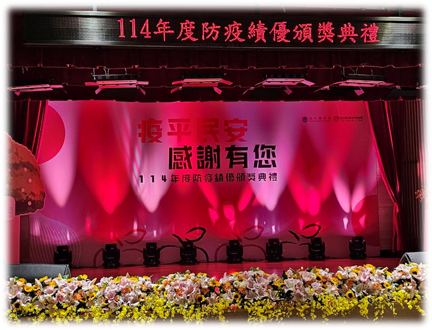 經宜蘭縣衛生局推薦,參加114年防疫績優(非公務類團體)表揚徵選,於141件參獎案件中脫穎而出,獲評為74件得獎團體之一,殊感榮幸。